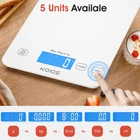 High Accuracy & Sensitive Sensors: Upgraded K7H digital food scale with built-in four sensitive load sensors can give you accurate weighing within a short time. Adopts anti-slip design, it improves safety and stability. Range of measurement: 0.1oz to 33lbs (3g to 15 kg). 1g or 0.1oz increments when adding ingredients. Included Battery & Type-C Charging: Powered by Type-C port and comed with 2 AAA batteries, you have more choice for charging. Press once to turn on, long press 3s to turn off. Kitchen scale turns off automatically if the displayed weight remains unchanged for 3 mins. 5 Weight Units & LCD Display: With the unit button, you can easily switch between different units: g, kg, lb:oz, fl'oz, ml to meet your different needs. Equipped with a large backlit LCD display with white fonts for easy reading. Tare Function & Smart Alarm: The Tare function subtracts the weight of the plate or container, easy to get accurate readouts of ingredients. Adopted advanced chip, food scale has low battery and overload indication to ensure the accuracy of measurement. Waterproof Tempered Glass & Easy to Store: Made of waterproof tempered glass, it can protect against food residue and water damage, makes wipe cleaning a breeze. 9.0 x 6.3 inch suitable size beats small cheap scales for it has enough platform for weighing various ingredients. Hidden hook design for easy storage.
