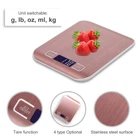 Features: Type Optional: , rechargeable, also supported operation( 5kg or 10kg); Rose , operated ( 5kg or 10kg). Unit Switch: Multifunctional kitchen scale measuring unit switchable: g, lb, , ml, kg. Including milk ML measuring. Precise weight: The precise is 1g. Tare function, clear backlight display and low indicator. Healthy choice: Prepare meals accurately, this digital scale can cook better. If there are any problems, please our store in . will give you a satisfactory solution. Specifications: Item: Kitchen scale Type optional: , rechargeable, also supported operation ( 5kg or 10kg); Rose , operated ( 5kg or 10kg) Main material: ABS+stainless steel Rechargeable type: 3.7V 200mAh; : 2h, working : 48h/ operated type(2 way) operated type: 2*AAA (not included) Unit: g, lb, , ml, kg Precise: 1g Size: 18*14*1.5cm Notice: * In order to scratch damage during transportation, a layer of blue protective film is attached to the surface of the product. Please tear off the protective film before use. Thank you * There could be some deviations due to manual measurement or slight color difference owing to photographing condition. Thank you for your understanding. Package Information: Package size: 21*16.5*3cm Package weight: 290g Gift Box Package Packing List: 1* Kitchen scale 1* cable 1* User manual