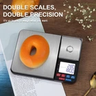 Double-weighting plate and double-precision electronic scale: it can be used for weighing both large and small items. Large scale 5kg/0.1g weighing range 0.5g - 5000g small scale 500g/0.01g weighing range 0.05g - 500g One scale/high -sensitivity induction: whether daily home/kitchen baking, or tea medicinal materials, jewelery and other items can be used. Easy to use: one key clearing and peeling, multiple food ingredients can be weighed together, which is convenient and quick to avoid frequent container weight calculation. 7 Different Measurements:The Food scale includes all the necessary unit measurements for you easy weight translations, convert measurement between in g/oz/lb/tl/kg/ml/milk ml. Convenient for you to choose the proper unit by pressing the mode button. Material quality: stainless steel large scale plate, beautiful, durable, easy to clean, long service life of electronic scale, waterproof, splash-proof, wear-resistant, rust-proof.