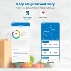 【Work With Smart App】Download Health app on Apple or Google Play, which works with Bluetooth 5.0 or above, syncs with Apple Health, analyzes food and calculates intake calories, fat, and carbohydrates up to 25 ingredients, provides a detailed intake report to track Marco or set a goal, great for Keto, diet, weight loss. 【Accurate Measurement】Food Nutrition Scale can weighs from 1g/0.002lb to 10kg/ 22lb in increment of 1g/ 1ml/ 0.05oz / 0.1fl.oz, provides accurate measurement with 4 high precision sensors. 【Multifunctional Food Scale】Combined with the nutritional scale, kitchen scale, and coffee scale together, track every meal and keep a log to control daily intake, the coffee timer function displays the ratio between coffee beans and water and records the time and weight of beans. 【5 Measuring units and Tare Function】Digital food scale easily convert measuring units among lb.oz, oz, ml, g, fl.oz with UNIT button, food weight scale has a tare function helps you remove the weight of the container, LED monitor clearer for digital display, hole design on the back can hang up for saving space. 【Tempered Glass and Large Size】Sleek design, durable, easy to clean and waterproof surface, the size is 8.3 x 6.3 x 0.75 inch, LED monitor size: 1.2 x 2.0 inch. Press or place over 200g object to turn on the gram scale. please note that there is no barcode scan option in the app.
