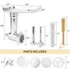π [PERFECT STAINLESS STEEL GRINDER ATTACHMENT FOR KITCHENAID]: Our high-quality stainless steel meat grinder attachment fits all KitchenAid stand mixers, providing an exceptional food processing experience. Itβs an ideal kitchen assistant for cooking enthusiasts and home cooks. A fantastic gift for fans of KitchenAid mixers. (Note: This product is not created by KitchenAid.) π [METAL DESIGN & HEALTH] Meat grinder attachment for kitchenaid stand mixer consists of aluminum, stainless steel food tray and grinding plates & cutter. All meat grinder kitchenaid is food grade material, to create delicious meals at home in a healthier way; more sturdy and durable compared to the plastic model. π [UPGRADED & COMPLETE ACCESSORIES]: This meat grinder attachment includes a comprehensive set of accessories: 1 grinder (with grinder body, food tray, grinder worm, locking ring, food pusher), 2 grinding blades, 4 grinding plates, 3 sausage stuffing tubes, 1 sausage stuffer holder, 1 kibbe attachment, and 1 cleaning brush. These tools allow you to get creative in the kitchen, making delicious meals for you and your family. π¦ [VERSATILE MEAT GRINDER & SAUSAGE STUFFER]: This professional-grade stainless steel food grinder attachment easily handles various tasks: grinding meat, fruits, vegetables, hard cheeses, making bread crumbs, and more. Pre-cool the grinder before use to maintain a cold grind temperature for clean meat processing. With three different sausage stuffer tubes, you can make any type of sausage you desire. Perfect for preparing burgers or sausages for your next party. π¦ EASY TO USE AND CLEAN: All parts of the stainless steel meat grinder attachment are detachable and feature a metal shinning finish, making them easy to clean. For quick cleaning, a cleaning brush is included. However, please note that this attachment is not dishwasher safe and should be hand washed for better maintenance.