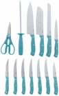 Evansville 14 Piece Cutlery Set, Stainless Steel with Turquoise Handles One 8in Chef Knife, one 7in Santoku Knife, one 8in Bread Knife, one 5in Utility Knife, one 3.5in Paring Knife, six 4.5in Steak Knives, one Sharpener, Kitchen Scissors, one Rubberwood Block Precision stamped construction for durability through the full length of the knife, with Full Tang Blades for Excellent Balance Beautiful rubberwood block High quality stainless steel blade is stain and rust resistant Hand wash to keep knives sharp Make sure all your slicing and dicing needs are met with the comprehensive Evansville 14 Piece Stainless Steel Cutlery Set. Each piece of this collection boasts precision and durability, and its sleek look is complemented by a beautiful stainless steel finish. It features stain and rust resistant stainless steel blades and full tang turquoise handles for balance. All pieces are stored in a handy black rubberwood block, adding elegance to your countertop. Features ergonomically designed handles for comfort. Recommended Use - Residential Shipping We offer FREE shipping on all orders! We ship within Three business days of payment, usually sooner. We use a selection of shipping services such as UPS, FedEx, USPS etc. We only ship to the lower 48 states, no APO/FPO addresses or PO Boxes allowed. Local pickups and combined shipping options are not provided at this time. Return You can return a product for up to 30 days from the date you purchased it. Any product you return must be in the same condition you received it and in the original packaging. Please keep the receipt. Payment We accept payment by any of the following methods: PayPal Please pay as soon as possible after winning an auction, as that will allow us to post your item to you sooner! Feedback Customer satisfaction is very important to us. If you have any problem with your order, please contact us and we will do our best to make you satisfied. Contact Us If you have any queries, please contact us via ebay. We usually respond within 24 hours on weekdays. Please visit our eBay store to check out other items for sale! Thank you for shopping at our store.