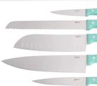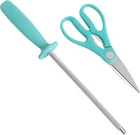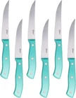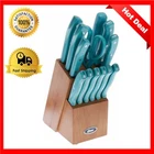 Knife Block Set Teal, Kitchen Knife Set with Block, 14 Pieces Stainless Steel Free & Fast Shipping Description: Make sure all your slicing and dicing needs are met with the comprehensive Evansville 14 Piece Stainless Steel Cutlery Set. Each piece of this collection boasts precision and durability, and its sleek look is complemented by a beautiful stainless steel finish. It features stain and rust resistant stainless steel blades and full tang turquoise handles for balance. All pieces are stored in a handy black rubberwood block, adding elegance to your countertop. Features ergonomically designed handles for comfort. Recommended Use - Residential Features: One 8in Chef Knife, one 7in Santoku Knife, one 8in Bread Knife, one 5in Utility Knife, one 3.5in Paring Knife, six 4.5in Steak Knives, one Sharpener, Kitchen Scissors, one Rubberwood Block Precision stamped construction for durability through the full length of the knife, with Full Tang Blades for Excellent Balance Beautiful rubberwood block High quality stainless steel blade is stain and rust resistant Hand wash to keep knives sharp After Sale Service: If You are Not Satisfied With Your Purchase, And We Will Provide Full Refund, And if You Still Believe Our Products, And We Will Provide a New Replacement. We Will Not Ask Any Question. If You Have Any Questions, Please Connect Us.