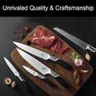 【ULTRA-SHARP and REUSE】Professional satin-polished and Stainless Steel blades are precision cut and finely ground for long-term use and razor sharp knife sets for kitchen.The integrated design of the blade and the bolster makes the ergonomically designed handle not easy to break or fall. 【ALL-IN-ONE KNIFE BLOCK SET】7 Pieces Kitchen Knife Block Set includes: 8" Chef knife, 8" Bread knife, 8" Carving knife, 5" Utility knife, 3.5" Paring knife, a Rubber wood knife block and a 3-Stage Sharpener. 【MODERN DESIGNED WOODEN KNIFE BLOCK】Made of natural rubber wood, 's block with knife set features more solid block, specific position for each knife and a non-slip breathable bottom. 【CUT with EASE】The knife sets blade is ground into a 45-degree angle from the back to the bottom, and the cutting edge angle is uniformly controlled below 30 degrees, which not only maintains the weight of the blade, but also reduces cutting resistance, and saves effort when cutting, chopping, slicing, and dicing food. 【Service Guarantee】We are confident that this sophisticated knife sets for kitchen will meet all your everyday needs. Also, this knife block set is suiteble for weddings, birthdays, housewarmings ,families, chefs and cooking lovers.If you have any questions or suggestions, please feel free to contact us.
