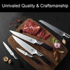 【ULTRA-SHARP and REUSE】Professional satin-polished and Stainless Steel blades are precision cut and finely ground for long-term use and razor sharp knife sets for kitchen.The integrated design of the blade and the bolster makes the ergonomically designed handle not easy to break or fall. 【ALL-IN-ONE KNIFE BLOCK SET】7 Pieces Kitchen Knife Block Set includes: 8" Chef knife, 8" Bread knife, 8" Carving knife, 5" Utility knife, 3.5" Paring knife, a Rubber wood knife block and a 3-Stage Sharpener. 【MODERN DESIGNED WOODEN KNIFE BLOCK】Made of natural rubber wood, 's block with knife set features more solid block, specific position for each knife and a non-slip breathable bottom. 【CUT with EASE】The knife sets blade is ground into a 45-degree angle from the back to the bottom, and the cutting edge angle is uniformly controlled below 30 degrees, which not only maintains the weight of the blade, but also reduces cutting resistance, and saves effort when cutting, chopping, slicing, and dicing food. 【Service Guarantee】We are confident that this sophisticated knife sets for kitchen will meet all your everyday needs. Also, this knife block set is suiteble for weddings, birthdays, housewarmings ,families, chefs and cooking lovers.If you have any questions or suggestions, please feel free to contact us.