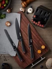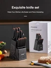 Knife Set, 13-Piece Kitchen Knife Set with Block Wooden German Stainless Steel Description All-in-one Knife Set: 1x chef knife, 1x bread knife, 1x carving knife, 1x utility knife, 1x paring knife, 6x steak knife,1x kitchen shears,1x knife block. This professional kitchen knife set includes all the essential tools for any kitchen High Grade Stainless Steel Blade: The blades are made of high carbon stainless steel, which is extremely durable and sharp, effortlessly cutting, chopping, slicling and dicing through a variety of ingredients Convenient Built-in Knife Sharpener: The built-in knife sharpener ensures that you can sharpen your knife at any time. The ventilation design at the bottom of the knife block allows your knives to dry quickly Ergonomic Design: The ergonomically designed handle of our knife set provides a better grip and better safety than similar products, which could bring you a comfortable cooking experience