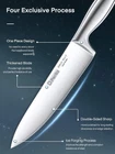 Knife Set, 14 Pieces Kitchen Knife Set with Clear Acrylic Knife Holder, Stainless Steel Super Sharp Chef Knife with Hollow Handle in One Piece Design All in one knife set: 14 pcs kitchen gadgets set includes: 8" chef knife, 8" carving knife, 8" bread knife, 5" utility knife, " paring knife, 6pcs serrated " steak knife, " Sharpening Steel, ” kitchen scissors and a clear acrylic stand. All accessories can be stored on the knife holder! No worry about safety: Made from a single piece of stainless steel, so there aren't crevices that could trap food. You don't need to worry about the coating falling off into your food, and never worry about the handle falling off. Super Sharp: Superior high carbon stainless steel blade adopts 4-sections sharpening technology, 16° ideal blade edge, staying sharp over repeated uses. Ready to be used at any time and reduce prep time to get the delicious food. Comfortable Knife Grip Handle: Designed with stainless steel hollow handle, making grip easier and more comfortable than ever. Compared with wooden and plastic handles, it is more durable and stained. Convenient Design: Equipped with a clear acrylic stand, easy to find the knife you need.
