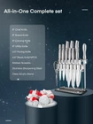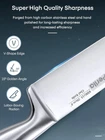 Knife Set, 14 Pieces Kitchen Knife Set with Clear Acrylic Knife Holder, Stainless Steel Super Sharp Chef Knife with Hollow Handle in One Piece Design All in one knife set: 14 pcs kitchen gadgets set includes: 8" chef knife, 8" carving knife, 8" bread knife, 5" utility knife, " paring knife, 6pcs serrated " steak knife, " Sharpening Steel, ” kitchen scissors and a clear acrylic stand. All accessories can be stored on the knife holder! No worry about safety: Made from a single piece of stainless steel, so there aren't crevices that could trap food. You don't need to worry about the coating falling off into your food, and never worry about the handle falling off. Super Sharp: Superior high carbon stainless steel blade adopts 4-sections sharpening technology, 16° ideal blade edge, staying sharp over repeated uses. Ready to be used at any time and reduce prep time to get the delicious food. Comfortable Knife Grip Handle: Designed with stainless steel hollow handle, making grip easier and more comfortable than ever. Compared with wooden and plastic handles, it is more durable and stained. Convenient Design: Equipped with a clear acrylic stand, easy to find the knife you need.