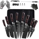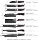 ALL-INCLUSIVE KNIVES SET: 14-piece kitchen knife set includes 8" Chef Knife, 8" Slicer Knife, 8" Bread Knife, 7" Santoku Knife, 5" Santoku Knife, 7" Cleaver Knife, 5"universal knife, and 3.5" Paring Knife. 3 Stainless Steel Finger Guards, 1 Bottle Opener, 1 Pair of Cut Resistant Gloves, 1 Portable Knife Sharpener, 1 Sharpening Stick are included in our giveaway. Whether cooking at home or outdoors, it can meet your needs. The ergonomic handle provides a solid grip while the shape of the bolster delivers optimal weight and balance. Non-slip pakka wood handle is able to maintain it’s friction even then the handle is wet, make the cutting more safe and effortless. Exceedingly sharp conical ground edge, hand-sharpened to a 16-degree angle, are long-lasting and easy to maintain. Blades are forged from High-Carbon German stainless steel and heat-treated for hardness that resists stains and corrosion. This knife set meet high-level safety standards for professional kitchens. Quick action support against manufacturer defects Please Hand Clean And Don't Use Dish Washer. Block available in Walnut hardwood that is gentle on blade edges The blade of this kitchen knife is made of 5Cr17 stainless steel, which has high hardness, wear resistance, good impact toughness performance. The ergonomic Full Tang handle can prevent the blade comfortable to grip and non-slip effect, it has a great fit in your hand. Product Description Blade color is silver Blade color is silver Blade color is silver Blade color is silver Blade color is silver