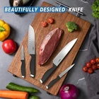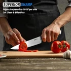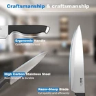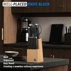 Knife Set, 14-Piece Kitchen Knife Set with Block Wooden German Stainless Steel Description High-quality Knife Set - Each knife blade is crafted in high carbon, German stainless steel, resulting in a durable, razor-sharp edge that gives cooks incredible control. Meet all you needs to chop, dice and slice your favorite ingredients quickly and efficiently All-in-one Set - The premium knife block set cover virtually all of your cooking needs: 8" Chef Knife, 8" Bread Knife, 7" Santoku Knife, 5" Utility Knife, 3.5" Paring Knife, Scissors, Sharpener, 6 steak knives, plus a handy knife block for storage and organization Ergonomic Design - With a well-balanced blade and Non-slip ABS handle, this chef knife set will provide you with a comfortable grip and superlative balance. Double-bevel blade under the same angle of 18° is suitable both for left-handed and right-handed users Razor-sharp Knife - blades are made of advanced 3CR13 stainless steel for top efficiency and durability. The edges of the knife are carefully hand sharpened to 16-18°per side, maintaining the perfect balance between achieving ultra thin slices and maximum resilience Easy to Clean & Maintain - All knives are dishwasher safe. Hand wash is recommended to prolong service life - soak the knife in warm water with a mild detergent and dry them with soft towel immediately. Boast a knife sharpener for simple, convenient self sharpening