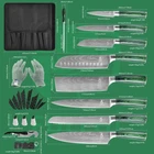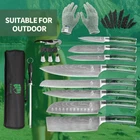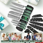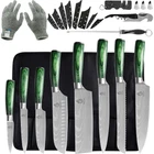 ALL-INCLUSIVE KNIVES SET: 14-piece kitchen knife set includes 8" Chef Knife, 8" Slicer Knife, 8" Bread Knife, 7" Santoku Knife, 5" Santoku Knife, 7" Cleaver Knife, 5"universal knife, and 3.5" Paring Knife. 3 Stainless Steel Finger Guards, 1 Bottle Opener, 1 Pair of Cut Resistant Gloves, 1 Portable Knife Sharpener, 1 Sharpening Stick are included in our giveaway. Whether cooking at home or outdoors, it can meet your needs. ALL-INCLUSIVE KNIVES SET: 14-piece kitchen knife set includes 8" Chef Knife, 8" Slicer Knife, 8" Bread Knife, 7" Santoku Knife, 5" Santoku Knife, 7" Cleaver Knife, 5"universal knife, and 3.5" Paring Knife. 3 Stainless Steel Finger Guards, 1 Bottle Opener, 1 Pair of Cut Resistant Gloves, 1 Portable Knife Sharpener, 1 Sharpening Stick are included in our giveaway. Whether cooking at home or outdoors, it can meet your needs. The ergonomic handle provides a solid grip while the shape of the bolster delivers optimal weight and balance. Non-slip pakka wood handle is able to maintain it’s friction even then the handle is wet, make the cutting more safe and effortless. Exceedingly sharp conical ground edge, hand-sharpened to a 16-degree angle, are long-lasting and easy to maintain. Blades are forged from High-Carbon German stainless steel and heat-treated for hardness that resists stains and corrosion. This knife set meet high-level safety standards for professional kitchens. Quick action support against manufacturer defects Please Hand Clean And Don't Use Dish Washer. Block available in Walnut hardwood that is gentle on blade edges The blade of this kitchen knife is made of 5Cr17 stainless steel, which has high hardness, wear resistance, good impact toughness performance. The ergonomic Full Tang handle can prevent the blade comfortable to grip and non-slip effect, it has a great fit in your hand.