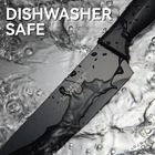 ALL-IN-ONE KITCHEN SET - 15-piece knife set includes. 8" chef's knife, 8" slicing knife, 7" Santoku knife, 8" serrated bread knife, 5" utility knife, 3.5" paring knife, 6 4.5" serrated steak knives, 1 kitchen shear and hard wood knife block with built-in knife sharpener HIGH PERFORMANCE - kitchen knife set is stain and rust resistant and can be used with high frequency or after long periods of inactivity to fully utilize the life of the knives NON-STICK & RUST RESISTANT - With a black coating that prevents oxidation of the steel, the kitchen knife set will last a long time and remain non-stick and rust resistant BLADES & NON-SKID HANDLE - Each of .DULA knives is carefully tuned to be the sharpest it can be and wears a built-in sharpener. The ergonomically designed handle provides a comfortable grip and the handle will no longer loosen or fall off DISHWASHER SAFE - The knife set can be washed in the dishwasher, easy and quick to operate, and dry the knife set after cleaning for easy storage, not taking up space