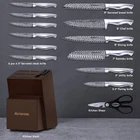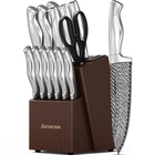 Knife Set, 15 Pieces Kitchen Knife Block Set with Built in Knife Sharpener Block, Dishwasher Safe, German Stainless Steel, Best Gift, Silver Product Details Style: 15 Pcs Brand: Astercook MPN: Does not apply UPC: Does not apply EAN: Does not apply Color: Silver Brand: Astercook Blade Material: High Carbon Stainless Steel Blade Edge: Plain Style: 15 Pcs Is the item dishwasher safe?: Yes Handle Material: Stainless Steel Blade Material: High Carbon Stainless Steel Construction Type: Forged BladeType: Plain Style: 15 Pcs Color: Silver Brand Name: Astercook Premium knife sets for kitchen with block Ultra sharp, full tang, rust resistant technology, German 1.4116 stainless steel. Outstanding craftsmanship, cutting edge technology, stunning design, and superior materials. This is not only the best choice for professional kitchen or home use, but also the highest grade for gifts. Dishwasher Safe Each knife is dishwasher tested 999 times. Exclusive patented anti-rust technology ensures that they remain in the best condition after intense rinsing in the dishwasher.Enjoy the pleasure of cooking and then easily restore your kitchen to a tidy state. All in One Value Knife Set 15 pieces Damascus knife set includes: 8" Chef knife, 8" Slicing knife, 7" Santoku knife, 8" Serrated bread knife, 5" Utility knife, 3.5" Paring knife, 6 Pcs 4.5" serrated steak knife, 1 Pc kitchen shear, and Premium Acacia Wood Knife Block with built-in Knife Sharpener. Comfortable and safe handle Ergonomic knife handle that perfectly fits any hand shape, designed by the most professional designers. Whether you use it left-handed or right-handed, whether your hand is big or small, holding this knife, you can feel the smoothness and comfort that you have never felt before! Show off your cutting skills, it will be your best partner! 100% Lifetime Warranty Risk free trial. astercook trust. Professional 24*7 customer service. Please don't hesitate. astercook will give you the best shopping experience.