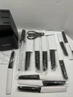 Open box in new condition Knife Set 15 Pieces Chef Knife Set with Block for Kitchen German Stainless Steel Knife Block Set Dishwasher Safe Elegant Black If you have any questions please feel free to contact me via ebay massage. Package was opened to make sure items were undamaged and for quality assurance. and to obtain photos.Thank you Check Out Our Store For More Amazing Deals and don’t be afraid to send us an offer. Thanks for shopping with us! PLEASE SEE PHOTOS FOR MORE DETAILS AND WHAT IS INCLUDED. Please do NOT ASSUME an item is included if it is not in the photo and we don’t have any kind of warranty if you order a wrong size or wrong item you are responsible for the return shipping label cost . Thank you Please note that we do not accept returns. All sales are final. However, if the item you receive doesn't match the listing description, you may be eligible for eBay Money Back Guarantee. *****Shipping & Handling***** * We ship daily by UPS, USPS, FedEx and regional freight carriers. All items are Sold As Is. Please check photos carefully and Utilize ebay's zoom to check out the item . Thank you Handling: We will ship all orders within 3 business days for most items. Items paid on the weekend or holidays are billed the next business day and the handling time begins at that point. Monday- Friday 7:00am to 7:00 pm central time, Orders over $200 will be asked for a signature on delivery. Delivery: We do not ship outside of the Continental US. Feedback: We are a small family-owned business who takes our reputation seriously! We buy and sell online, and completely understand the value of trust. Positive Feedback on your purchases is greatly appreciated. If you are unsatisfied with your order, please contact us and we will work with you to resolve it to your satisfaction! Please ask all questions and check out all photos and no Returns. Note: Due to the different monitor and light effect, the actual color of the item might be slightly different from the color showed on the pictures. If you feel you’re going to leave neutral or negative feedback please feel free to contact me first. Thanks