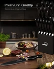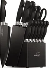 【15 Pieces Multipurpose Knife Set】 15 pieces knife set includes: 8" Chef knife, 8" Slicing knife, 7" Santoku knife, 8" Serrated bread knife, 5" Utility knife, 3.5" Paring knife, 6 Pcs 4.5" serrated steak knife, 1 Pc kitchen shear, and Black hard wood Knife Block with built-in Knife Sharpener. 【Black Non-Stick & Anti-Rust Coating】 The black coating on the stainless steel surface does a good job of stopping the knives from oxidizing in contact with oxygen in the air, so the kitchen knife set will remain non-stick and rust-proof for years to come. 【Amazing Built-in Knife Sharpener】 Kitchen knife sets with built-in sharpeners are very convenient and you can sharpen your knives with one hand. It saves you the trouble of finding a sharpener and sharpening your knives on a whetstone, which is great invention. 【Dishwasher Safe Sharp Knife Set】 Forged from 1.4116 high-carbon German stainless steel, this kitchen knife set is extremely resistant to stains and rust. Industry-leading tapered edge grinding technology provides optimal sharpness for precise cutting and easy resharpening. 【Amorston lifetime warranty system】Amorston each set of knives based on excellent quality, after strict quality inspection, superior customer service for each customer to provide a lifetime warranty, please feel free to buy! Product Description 1 8" Chef Knife 2 8" Slicing Knife 3 7" Santoku Knife 1 8" Bread Knife 2 5" Utility Knife 3 3.5" Paring Knife