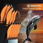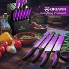 Knife Set, 15-Piece Kitchen Knife Set with Block, German Stainless Steel Sharp Knives Set for Kitchen with Built-in Sharpener, Ergonomic TPR Anti-Slip Handle. About this item ALL-IN-ONE KNIFE SET - This knife set includes a variety of essential knives for all your cooking needs - 8” chef knife, 7” santoku knife, 8” bread knife, 8” slicing knife, 4.5” steak knife(6pcs), 5” utility knife, 3.5” paring knife, kitchen scissors, built-in sharpener and elegant black knife block. ERGONOMIC ANTI-SLIP HANDLE - Our Dolphin-Shaped ergonomic handle with colorful soft Santoprene grip provides the most comfortable and firm hold. Our knife set will turn your kitchen work into a pleasure. Our knives are colorful, so is our life ! NON-STICK & RUST-RESISTANCE - Food-grade coating on the blade ensures exceptional non-stick and rust-resistant performance. Dishwasher safe. RAZOR SHARP & DURABLE EDGE - Brewin Kitchen knife set is crafted from premium German 1.4116 stainless steel, providing an excellent balance between long-lasting sharpness and durability. The razor-sharp edge is engineered with a 56+ Rockwell hardness score and hand polished at 14-16 degrees per side, which ensures precise and effortless cutting every time. Payment ●Payment must be received within 3 business days of auction closing. ●Please Note: Import duties, taxes and chargers are not included in the item price or shipping charges. These charges are the buyer's responsibility. Shipping ●Items will be shipped within 3 days after the cleared payment. All items will be checked carefully and packages in good condition. ●We will ship to ebay's address only. Please make sure your address on ebay is the same with your shipping address before you pay. ●Shipping and Handling will be determined based upon the ship to address ●If you didn't receive your package, this time schedule, please do not hesitate to contact us. Within 24 hours we will try to update you with the latest tracking details of the shipment. Return and Feedback ●We sincerely hope that you can leave us a positive feedback. If, for any reason you are not satisfied with your purchase, please contact us through "Ask Seller Questions" before leaving neutral or negative feedback ●If you are not satisfied about your received item, please return it within 30 days for a money back. ●We will accept any return and give a full refund on any item. The item must be returned to us in original condition and some items the buyer need to pay return shipping cost.