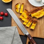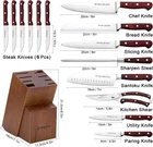 . Every moment worth enjoying Emojoy is a brand that offers kitchen products to all over the world. We advocate that “Every moment worth enjoying”. To fulfill this better. Emojoy put quality in first place and offers our customer the best quality products. The BEST Housewarming Gift for All Your Loved. In one EMOJOY premium knife set Gives you a knife that is sharp, rust resistant, easy to maintain, holds its edge retention and easy to re-sharpen. Beautiful Pakkawood handles are very durable and dense. Traditional Polymer handles are industrial strength. The forged bolster gives the knife and steel balance and heft. The fully exposed tang signifies that the set is made from one piece of steel. German Steel-X50CrMoV15 Triple Rivet Polymer and Pakkawood Handles Forged Bolster and Full Exposed Tang Emojoy Knife Set Detail Chef Knife—A multifunctional knife with curved blade Carving Knife—Cutting smaller and thinner slices of meat and fish. Utility Knife—Designed to cut fruits and vegetables and remove fat or sinew from meat. Paring Knife—Peeling, trimming and segmenting fruits and vegetables. Steak Knives(6 pcs)—Serrated blade increases cutting efficiency Bread Knife—Scalloped and serrated blade cuts bread, burgers and pizza. Santoku Knife—Slicing, dicing, and mincing. Ultra-sharp Edge-Ideal for slicing, cutting, chopping Triple Rivets-The blade and tool-holder are one Thickness-For even more durability Clasp Design- Easy to use collect Important Hints-Groove design for holding bones not to slide away Multifunction Scissor—Cleaning skin off of poultry and trimming fat meat. Ergonomically engineered-Angled slot edges Non-skid feet, Natural wood grain and healthy. Keeps your kitchen clean and orderly. Keeping in excellent condition will enhance chef capabilities