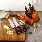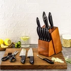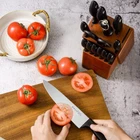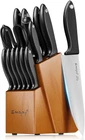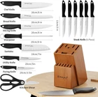 Knife Set, 15-Piece Kitchen Knife Set with Block Wooden German Stainless Steel. Item Description: 【Ergonomic Handle】Comfortable ergonomic knife set handle means you can cut, or slice with confidence and without straining your hands. All knives set designed with even weight distribution for control and accuracy, letting you Chop, Slice, or Dice like a Pro! 【A BEST GIFT】Emojoy was born for everyone loving cooking.Our knife set with block is more like every chef's best partner for any of your cooking needs. For the one you cared about, Emojoy kitchen knife sets with block it's also a wonderful wedding gift for your friends or Mother's Day ,birthday,housewarming,Thanksgiving,Christmas and any other events. 【Super Cost-effective Knifes Kitchen Sets】Knife set with block includes 8" chef's knife,8" bread knife,8" slicing knife,7" santoku knife,5" utility knife,3.5" paring knife, kitchen scissors, sharpen steel and 6 pieces of 5" steak knives.Various combinations for all culinary needs. 【Professional Kitchen Knife Set】All kitchen knife sets with block’ blade is forged from Superior high-Carbon German stainless steel with exceptional corrosion resistance and oxidation resistance. Strong, durable bolster for perfect stability and control. After professional forging and polishing technology, the blade is ultra sharp and durable, more precise cutting effect.