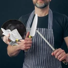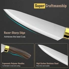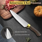 Knife Set, 15-Piece Kitchen Knife Set with Block Wooden German Stainless Steel Descrption This chef kitchen knife block Set is made of high-quality 3CR13 stainless steel with low temperature quenching, painting and blade 1000°heat treatment. Hand sharpened 13-15°per side, for effortless precision cutting 15PCS knife set with knife block includes,6pcs 5"steak knife,8"bread knife,8" slicing knife,8"chefs knife,3.5"paring knife,5" utility knife,sharpening rod,kitchen shears,knife block and Knife cleaning rag.Perfect for slicing, dicing, chopping food,fruit ect,This kitchen knives sets will become your kitchen essentials and help you handle food more easily The handle is made of comfortable and high-quality ABS material, which makes the handle corrosion-resistant and durability. It will not feel tired or uncomfortable even after long-term use When you are finished using the tool, use our rag to dry the water and store it on our equipped knife holder to protect the blade from scratches and extend the service life of the tool. The bottom of the knife will not touch the surface of the round knife block, thus protecting the sharpness of the blade