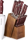 . Every moment worth enjoying Emojoy is a brand that offers kitchen products to all over the world. We advocate that “Every moment worth enjoying”. To fulfill this better. Emojoy put quality in first place and offers our customer the best quality products. The BEST Housewarming Gift for All Your Loved. In one EMOJOY premium knife set Gives you a knife that is sharp, rust resistant, easy to maintain, holds its edge retention and easy to re-sharpen. Beautiful Pakkawood handles are very durable and dense. Traditional Polymer handles are industrial strength. The forged bolster gives the knife and steel balance and heft. The fully exposed tang signifies that the set is made from one piece of steel. German Steel-X50CrMoV15 Triple Rivet Polymer and Pakkawood Handles Forged Bolster and Full Exposed Tang Emojoy Knife Set Detail Chef Knife—A multifunctional knife with curved blade Carving Knife—Cutting smaller and thinner slices of meat and fish. Utility Knife—Designed to cut fruits and vegetables and remove fat or sinew from meat. Paring Knife—Peeling, trimming and segmenting fruits and vegetables. Steak Knives(6 pcs)—Serrated blade increases cutting efficiency Bread Knife—Scalloped and serrated blade cuts bread, burgers and pizza. Santoku Knife—Slicing, dicing, and mincing. Ultra-sharp Edge-Ideal for slicing, cutting, chopping Triple Rivets-The blade and tool-holder are one Thickness-For even more durability Clasp Design- Easy to use collect Important Hints-Groove design for holding bones not to slide away Multifunction Scissor—Cleaning skin off of poultry and trimming fat meat. Ergonomically engineered-Angled slot edges Non-skid feet, Natural wood grain and healthy. Keeps your kitchen clean and orderly. Keeping in excellent condition will enhance chef capabilities