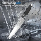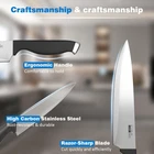 Knife Set, 15-Piece Kitchen Knife Set with Block Wooden German Stainless Steel Discription High-quality Knife Set - Each knife blade is crafted in high carbon, German stainless steel, resulting in a durable, razor-sharp edge that gives cooks incredible control. Meet all you needs to chop, dice and slice your favorite ingredients quickly and efficiently All-in-one Set - The premium knife block set cover virtually all of your cooking needs: 8" Chef Knife, 8" Bread Knife, 7" Santoku Knife, 5" Utility Knife, 3.5" Paring Knife, Scissors, Sharpener, 6 steak knives, plus a handy knife block for storage and organization Ergonomic Design - With a well-balanced blade and Non-slip ABS handle, this chef knife set will provide you with a comfortable grip and superlative balance. Double-bevel blade under the same angle of 18° is suitable both for left-handed and right-handed users Razor-sharp Knife - blades are made of advanced 3CR13 stainless steel for top efficiency and durability. The edges of the knife are carefully hand sharpened to 16-18°per side, maintaining the perfect balance between achieving ultra thin slices and maximum resilience Easy to Clean & Maintain - All knives are dishwasher safe. Hand wash is recommended to prolong service life - soak the knife in warm water with a mild detergent and dry them with soft towel immediately. Boast a knife sharpener for simple, convenient self sharpening
