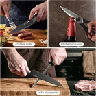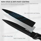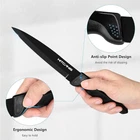 Knife Set, 15-Piece Kitchen Knife Set with Block Wooden German Stainless Steel Description:- Kitcanis Knife Set - This high quality kitchen knife set is stain and rust resistant and can be used with high frequency or after long periods of inactivity to fully utilize the life of the knives. 15 Pieces Multipurpose Knife Set- 15-piece knife set includes. 8" chef's knife, 8" slicing knife, 7" Santoku knife, 8" serrated bread knife, 5" utility knife, 3.5" paring knife, 6 4.5" serrated steak knives, 1 kitchen shear and hard wood knife block with built-in knife sharpener. Non-Stick and Rust Resistant:With a black coating that prevents oxidation of the steel, the kitchen knife set will last a long time and remain non-stick and rust resistant. The ergonomically designed handle provides a comfortable grip and the handle will no longer loosen or fall off. Dishwasher Safe:The knife set can be washed in the dishwasher, easy and quick to operate, and dry the knife set after cleaning for easy storage, not taking up space. Built-in Knife Sharpener:Kitcanis knife sets with built-in sharpeners are very convenient and you can sharpen your knives with one hand. It saves you the trouble of finding a sharpener and sharpening your knives on a whetstone.