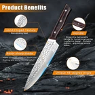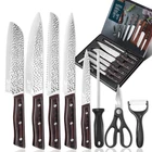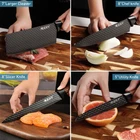 8 Piece Kitchen Knive Set, Non-Stick Stainless Steel Chef Knife Cleaver Cooking Kit, Japanese Damascus Pattern Steel Chef Knife Kitchen Knives, Chef's Knife, Small Cleaver, Meat Cl eaver , Paring Knife, Scissors, Knife Sharpener, Best Gift ALL-IN-ONE KNIFE SET, included 8"Chef Knife,7"small Cleaver,8"Carving Knife,8"Bread Knife, 5"Utility Knife,Scissors,Peeler ,whetstone Stick,This kitchen knives comes in a beautifully designed and high-quality gift box, making it an ideal gift for a friend or loved one,even yourself. Extremely sharp: Every knife blade is made from forged high carbon steel. The blades are then hand-sharpened and lastly satin finished-which provides a superbly sharp and efficient edge that will retain its sharpness for long periods, even with heavy daily use. Comfort and Safety: Handles are made from wood for easy to maneuver, comfortable, and non-slip handles.Every knife have the balance pretty evenly distributed between the blade and the handle, If you are using the knife a lot for large quantities of ingredients, a balanced knife offers far less strain on the arm. Durable : The cutlery grade steel with 58 Rockwell hardness used to make the knife blades neither rusts, corrodes nor discolors. You are still expected to hand-wash the knives and Stay dry to maintain the appearance. Precision forging creates a durable knife. Specification Condition: 100% Brand New & High class quality Material: STAINLESS STEEL Blade Material: High carbon stainless steel Handle Material: Color wood handle Hardness: 58 HRC Sharpness: Razor sharp Knife handle: wooden handle Surface Process:Polishing Processing, High-end Appearance Characteristics:Sharp and durable, Super anti rust,effort saving. Fully Sharpened blade, durable and sharp. Suitable for salmon,sushi,fish raw slicing and cutting. Applicable place: Home Kitchen, Hotel, Restaurant, Gifts Packing: Tightly packed Applicable place: Home kitchen, hotel, restaurant, gifts Package incl ude :----- 8PCS knife Set with box Chef's knife, Bread knife, Dasande knife, Universal knife, Slicing knife, 3 accessories Skin peeler, Sharpening stick, Scissors ------------------------------------------------------------------------------------------------------------------------------------------------------------ 6Pcs Kitchen Knife Set Features: Extremely sharp: Every knife blade is made from forged high carbon steel. The blades are then hand-sharpened and lastly Satin finished-which pro vides a superbly sharp and efficient edge that will retain its sharpness for long periods, even with heav y daily u se. Comfort and Safety:Handles are made from wood for easy to maneuver, comfortable, and non-slip handles.Every knife have the balance pretty evenly distributed between the blade and the handle, If you are using the knife a lot for large quantities of ingredients, a balanced knife offers far less strain on the arm. Durable: The cutlery grade steel with 58 Rockwell hardness used to make the knife blades neither rusts, corrodes nor discolors. You are still expected to hand-wash the knives and Stay dry to maintain the appearance. Precision forging creates a durable knife. Package include : 6PCS knife Set with box -------------------------------------------------------------------------- Kitchen Knife Set With Wooden Block High Carbon Stainless Steel Chef Knives Gift This knife sets for kitchen with block would be a good choice as a gift for Thanksgiving, Christmas, Father’s&Mother’s Day, Wedding, Birthday, etc. Featu res 【 Multi-Purpose Chef Knife set 】15-piece stainless steel knives set for kitchen includes: 8"Chef knife, 8"Bread knife, 7" Santoku knife, 6"Boning Knife, 5" Utility knife, 3.5"Paring knife, 6pcs 4.5" Steak knives, kitchen shears, 7" knife sharpener and a knife block. Meet all your kitchen needs. 【 Super Sharp Knife Blade and Extreme Comfort Knife Handle 】Every blade is precision forged from high-carbon stainless steel for superb rust and corrosion protection,for resisting stains and corrosion, which could stay sharp longer. The ergonomic handle provides you with a comfortable handheld experience. 【 High Qual ity Kitchen Knife Set 】The knives block and knives handle made of exquisite and high-quality Dark brown pakkawood will be the most beautiful ornament in your kitchen. 【 Easy Care & Storage 】All knives are stored safely in the knife block for space-efficient storage, knife seat is easier to insert and remove, easy to store and maintain and maintain the sharpness of the blade. Knives List: 8" Chef Knife 8" Bread Knife 7" Santoku Knife 7" Boning Knife 5"Utility Knife 3.5" Paring Knife 5.5" Kitchen Shears 8" Sharpening Steel 4.5" Steak Knives Set Of 6 15Pcs Professional Kitchen Knife Set 15 Piece kitchen knife block set which is one of our high-end knives collections, its superior blade is forged from German high carbon stainless steel. The professional knife set in our collections are more about aesthetics, luxury and enduring value. The Chef Knife Surface is Finely Polished, Rustproof, Corrosion-resistant V-sharped cutting edge, very sharp cutting food freely 5Cr15 - High Carbon Forged Stainless Steel Ergonomic handle shape for superior hand control, agility, and comfort Luxurious wood kinfe block, elegant and space efficient. Chef knife All-purpose kitchen knife that can be used for chopping, mincing, slicing and dicing. Utility knife Cut fruits and vegetables and remove or sinew from meat. Bread knife Scalloped and serrated blade cuts bread, burgers and pizza. kitchen shears A multi-purpose tool in the kitchen: Chicken, vegetables, walnuts, corkscrew. Boning knife Ideal for de-boning, descaling, filleting, skinning and trimming. Steak knives 6PCS Serrated blade increases cutting efficiency. Paring knife Peeling, trimming and segmenting fruits and vegetables. Santoku knife Used for Slicing, dicing, and mincing. MORE DETAILS kitchen shears Great for any meat and bones you can't cut. Sharpening Steel Keep your kitchen knive