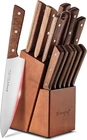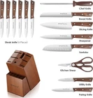 Comprehensive Set: This set includes an 8” Chef Knife, 8” Slicing Knife, 8” Santoku Knife, 8” Bread Knife, 5” Utility Knife, 3.5” Paring Knife, Kitchen Scissors, Knife Sharpener, 6 pieces of 4.5” Steak Knives, and an acacia wood block for storage. Emojoy Touch Series: This 15-piece knife set featuring triple riveted walnut handles. Experience a comfortable grip designed for enhanced control and a natural feel. Unrivaled Sharpness: Crafted with high-carbon stainless steel blades, each knife is precision-cut with dual-side 15° angle ground technology, ensuring exceptional sharpness for effortless cutting. Built to Last: Designed to withstand corrosion and maintain sharpness over time, this premium kitchen knife set comes with a lifetime afterservice guarantee, offering peace of mind and long-lasting durability. Comfortable Grip and Balance: The ergonomic design of the wood handles, tapering at the front and widening at the back, provides easy control and a comfortable grip. Additionally, the full-tang construction, combined with the bolster, ensures optimal balance with every cut. Product Description The video showcases the product in use. The video guides you through product setup. The video compares multiple products. The video shows the product being unpacked.