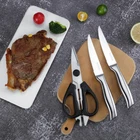 Knife Set, 15-Piece Kitchen Knife Set with Block Wooden Stainless Steel. Item Description: EXCELLENT QUALITY KNIFE SET WITH BLOCK – The knife set is made of high carbon stainless steel with excellent resistance to rust and corrosion. Knife block adopts premium acacia wood with finely coating for higher reliability. ALL-IN-ONE KNIFE SETS - 15 pieces kitchen knife set includes: 8" Chef knife, 8" Slicing knife, 7" Santoku knife, 8" Serrated bread knife, 5" Utility knife, 3.5" Paring knife, 6 Pcs 4.5" serrated steak knife, 1 Pc kitchen shear, 1 Pc knife sharpener and Premium Acacia Wood Knife Block. ULTRA SHARP KNIFE SET: Professional fine tempering process on High-Quality stainless steel achieves optimum sharpness and long-lasting razor edge retention. Superb cutting performance of sharp knife set ensures precise but effortless slicing, dicing and chopping on any food prep. Enjoy cooking, more fun! COMFORTABLE AND SAFE HANDLE - Ergonomic knife handle that perfectly fits any hand shape. Whether you use it left-handed or right-handed, whether your hand is big or small, holding this knife, you can feel the smoothness and comfort that you have never felt before.