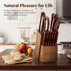 Knife Set, 15-pcs Emojoy Kitchen Knife Set with Block, Premium Kitchen Knives with Heavy Poultry Shears, Sharpener and 6pcs Serrated Steak Knives Product Details Color: New 15pcs Brand: Emojoy Blade Material: High Carbon Stainless Steel Blade Edge: Plain Style: Modern Is the item dishwasher safe?: No Handle Material: Engineered Wood Blade Material: High Carbon Stainless Steel Construction Type: Forged BladeType: Plain Style: Modern Color: New 15pcs Manufacturer: Emojoy Brand Name: Emojoy BLOCK SETS - Includes 8Chef Knife, 8Slicing Knife, 8Santoku Knife, 8Bread Knife, 5Utility Knife, 3.5Paring Knife, Kitchen Scissors, Knife Sharpener, 6 pieces of 4.5Steak Knives and Oak wooden block. EMOJOY TOUCH SERIES - 15 pieces knife set with triple riveted wooden handles that resist fading, discoloration, heat and impact. RAZOR SHARP - High Carbon Stainless Steel Blades, precisely cut with the dual-side 15 angle ground tech for incredible sharpness. DURABLE - Crafted to resist corrosion and dulling. This premium kitchen knife set comes with a lifetime afterservice. FIT HAND - The wood handle curves slightly into the hand, makes knife easy control. Full-tang together with the bolster ensures balance for every cut.