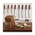 Brand New Knife Set, 15-pcs Emojoy Kitchen Knife Set with Block, Premium Kitchen Knives with Heavy Poultry Shears, Sharpener and 6pcs Serrated Steak Knives Manufacturer model: BLOCK SETS - Includes 8Chef Knife, 8Slicing Knife, 8Santoku Knife, 8Bread Knife, 5Utility Knife, 3.5Paring Knife, Kitchen Scissors, Knife Sharpener, 6 pieces of 4.5Steak Knives and Oak wooden block. EMOJOY TOUCH SERIES - 15 pieces knife set with triple riveted wooden handles that resist fading, discoloration, heat and impact. RAZOR SHARP - High Carbon Stainless Steel Blades, precisely cut with the dual-side 15 angle ground tech for incredible sharpness. DURABLE - Crafted to resist corrosion and dulling. This premium kitchen knife set comes with a lifetime afterservice. FIT HAND - The wood handle curves slightly into the hand, makes knife easy control. Full-tang together with the bolster ensures balance for every cut. Description Shipping and Handling Please allow 5-7 business days for the package to arrive, regardless of buyer location within the US. We will provide an online tracking number to you once the item has been shipped. It may take a few business days for our automated system to process the tracking number onto eBay. However, this will not affect the shipping times. Return Policy All our products are brand new and sealed. All items qualify for returns within 30 days of receipt. Feedback We take our reputation seriously. If you have any questions or concerns, please contact us and we will respond back to your message within 24 hours.