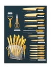 Brand New Knife Set, 16 Pieces High Carbon Stainless Steel Golden Color Kitchen Knife Set, Titanium Coating Blade, No Rust and Super Sharp Cutlery Knife Set with Acrylic Stand and Kitchen Scissors, Gift Manufacturer model: What You Get: This 16 pieces knife set covers a huge variety of knives: 8" chef knife, 8" carving knife, 8" bread knife, 6" santoku knife, 5" utility knife, 3.5" paring knife, 6 x 4.5steak knives, 3.5" peeler and 5" kitchen shears, 8" sharpener and an acrylic stand Non Stick and No Rust Knife: The stainless steel blade is golden titanium coated to prevent steel from oxidizing and rust. The non stick and non rust characteristic extend the lifespan of the knife set High Quality: The ergonomically designed handle provides comfort for cutting. High carbon stainless steel provides sharpness for precise cutting. Acrylic block is easy to clean, no stains inside Attractive Gift: The rainbow color knife is beautiful and attractive. The gift box and the eye catching outlook make it an amazing gift for wedding, housewarming, Thanksgiving and more Description Shipping and Handling Please allow 5-7 business days for the package to arrive, regardless of buyer location within the US. We will provide an online tracking number to you once the item has been shipped. It may take a few business days for our automated system to process the tracking number onto eBay. However, this will not affect the shipping times. Return Policy All our products are brand new and sealed. All items qualify for returns within 30 days of receipt. Feedback We take our reputation seriously. If you have any questions or concerns, please contact us and we will respond back to your message within 24 hours.