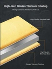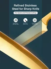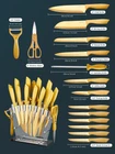 Knife Set, 16 Pieces High Carbon Stainless Steel Golden Color Kitchen Knife Set, Titanium Coating Blade, No Rust and Super Sharp Cutlery Knife Set with Acrylic Stand and Kitchen Scissors, Gift Product Details Color: Gold Brand: Aiheal MPN: Does not apply UPC: Does not apply EAN: Does not apply Color: Gold Brand: Aiheal Blade Material: Stainless Steel Blade Edge: Plain or Fine Style: Modern Is the item dishwasher safe?: Yes Handle Material: Engineered Wood Blade Material: Stainless Steel Construction Type: Coated BladeType: Plain or Fine Style: Modern Color: Gold Manufacturer: Aiheal Brand Name: Aiheal What You Get: This 16 pieces knife set covers a huge variety of knives: 8" chef knife, 8" carving knife, 8" bread knife, 6" santoku knife, 5" utility knife, 3.5" paring knife, 6 x 4.5steak knives, 3.5" peeler and 5" kitchen shears, 8" sharpener and an acrylic stand Non Stick and No Rust Knife: The stainless steel blade is golden titanium coated to prevent steel from oxidizing and rust. The non stick and non rust characteristic extend the lifespan of the knife set High Quality: The ergonomically designed handle provides comfort for cutting. High carbon stainless steel provides sharpness for precise cutting. Acrylic block is easy to clean, no stains inside Attractive Gift: The rainbow color knife is beautiful and attractive. The gift box and the eye catching outlook make it an amazing gift for wedding, housewarming, Thanksgiving and more