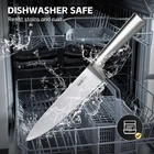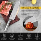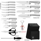 【All-In-Knife Set】Our 16-piece knife set included 8”Chef Knife,8”Slicing Knife,8”Bread Knife,8”Santoku Knife, 5”Utility Knife, 3.5”Paring Knife, Kitchen Scissors,Kitchen Sharpener Rob ,6 piece 4.5”Steak Knives , Peeler, 3” Birds Beak Knife and a wooden knife block to it all. 【Ultra-Sharp Kitchen Knife Set】The blades of our wooden knives is forged with hand-polished edges and precise tempering technology,each taper-ground edge is hand polished to 14-16°per side for long-lasting sharpness and easy honing. Maintaining the perfect balance between achieving ultra thin slices and maximum resilience which is assist chop food. 【High Quality Kitchen Knives】All knives’ blade is forged from Superior high-Carbon stainless steel with excellent corrosion resistance and oxidation resistance.A balanced weight distribution and ergonomic handles that it minimize fatigue and maximize the cutting precision for people. 【Easy To Care & Dishwasher Safe】 All knives can be stored in knife block to help keep the blade sharp and the table clean. Anti-rust technology ensures that they remain in the best condition after intense rinsing in the dishwasher. 【100% SATISFICATION 】Every knife set is backed by superior quality assurance for confident purchase. We wish our customer to be 100% happy. If you have any problem about the stainless steel knife set, please feel free to us, we're always here for you. Do not hesitate! Try it risk-free now.