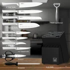High-quality Knife Set - Each knife blade is crafted in high carbon, German stainless steel, resulting in a durable, razor-sharp edge that gives cooks incredible control. Meet all you needs to chop, dice and slice your favorite ingredients quickly and efficiently All-in-Set - The premium knife block set cover virtually all of your cooking needs: 8" Chef Knife, 8" Slicer Knife, 8" Bread Knife, 7" Santoku Knife, 5" Utility Knife, 3.5" Paring Knife, 3" Birds Beak, Scissors, Sharpener, 6 Steak Knives, Knife Block, plus a Peeler as a giveaway Ergonomic Design - Knife handle made of high carbon stainless steel will not only give the cooks more leverage but also better balance. Double-bevel blade under the same angle of 18° is suitable both for left-handed and right-handed users Razor-sharp Knife - blades are made of advanced 3CR13 stainless steel for top efficiency and durability. The edges of the knife are carefully hand sharpened to 16-18°per side, maintaining the perfect balance between achieving ultra thin slices and maximum resilience Easy to Clean & Maintain - All knives are dishwasher safe while hand wash is recommended to prolong service life. Boast a knife sharpener for simple, convenient self sharpening. All knives safely in the knife block for space efficient storage Quality After-Sales Service - Your purchase get our promise of 24-month quality . Please us via message if you meet any problems with this knife set and we will reply within 24 hours
