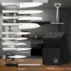 High-quality Knife Set - Each knife blade is crafted in high carbon, German stainless steel, resulting in a durable, razor-sharp edge that gives cooks incredible control. Meet all you needs to chop, dice and slice your favorite ingredients quickly and efficiently All-in-Set - The premium knife block set cover virtually all of your cooking needs: 8" Chef Knife, 8" Slicer Knife, 8" Bread Knife, 7" Santoku Knife, 5" Utility Knife, 3.5" Paring Knife, 3" Birds Beak, Scissors, Sharpener, 6 Steak Knives, Knife Block, plus a Peeler as a giveaway Ergonomic Design - Knife handle made of high carbon stainless steel will not only give the cooks more leverage but also better balance. Double-bevel blade under the same angle of 18° is suitable both for left-handed and right-handed users Razor-sharp Knife - blades are made of advanced 3CR13 stainless steel for top efficiency and durability. The edges of the knife are carefully hand sharpened to 16-18°per side, maintaining the perfect balance between achieving ultra thin slices and maximum resilience Easy to Clean & Maintain - All knives are dishwasher safe while hand wash is recommended to prolong service life. Boast a knife sharpener for simple, convenient self sharpening. All knives safely in the knife block for space efficient storage Quality After-Sales Service - Your purchase get our promise of 24-month quality . Please us via message if you meet any problems with this knife set and we will reply within 24 hours