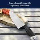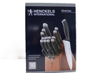 Henckels International SilverCap 16-Piece Knife Hardwood Block Set Product Highlights: Set Includes: 1- 3" Paring Knife 1- 4" Paring Knife 1- 5" Serrated Utility Knife 1- 5" Hollow Edge Santoku Knife 1- 8" Bread Knife 1- 8" Chef's Knife 8 - 4.5" Steak Knives 1- Kitchen Shears 1- Hardwood Knife Block Key Features: Blades crafted from high-quality stainless steel for durability and precision. Single-piece, precision-stamped construction ensures long-lasting performance. Professional satin-finished blades are finely honed for superior sharpness. Micro-serrated edges eliminate the need for sharpening. Lightweight, full-tang design provides excellent balance and maneuverability. Stylish stainless steel endcaps with logo add a sleek touch. Ergonomically designed ABS handles for a comfortable grip. Dishwasher-safe for easy cleaning. Includes a sturdy hardwood block for safe storage and organization.