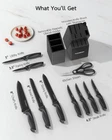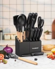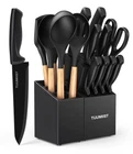 Innovative Utensil Holder: Say goodbye to kitchen clutter with our thoughtfully designed storage solutions.Our set includes innovative organizers, magnetic removable utensil holder, ensuring your kitchen tools remain neatly arranged and readily accessible. Premium Kitchen Utensils Set: Crafted from food-grade silicone and sturdy acacia wood, this 6-piece set offers reliable quality and heat resistance up to 464℉. Comprehensive Knife Collection: Includes essential knives like Bread Knife, Chef's Knife, Steak Knives, and more, complete with a Knife Block featuring a built-in Sharpener. High-Quality Knife Set: Forged with high-carbon stainless steel and treated with upgraded BO oxidized coating technology, ensuring rust-resistant, stain-free blades for long-lasting performance and dishwasher safe. Peace of Mind Warranty: Enjoy a hassle-free 30-day trial and lifetime warranty, making it perfect for both professional and amateur cooks, and ideal gift for various occasions.