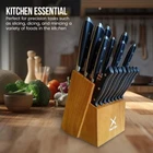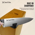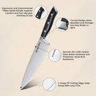ใ๐๐๐ ๐๐ฟ๐ ๐๐ถ๐๐ต ๐๐๐ฒ๐ฟ๐ ๐๐๐ใ: Experience culinary perfection with our exquisite knife block set, where precision meets luxury in every blade. Crafted with meticulous attention to detail, each knife is engineered for durability, featuring a solid tang, rustproof construction, and razor-sharp edges. Embrace the elegance of our high-end design of German knife set, elevating both performance and aesthetics in your kitchen. ใ๐๐ณ๐ณ๐ผ๐ฟ๐๐น๐ฒ๐๐ ๐๐น๐ฒ๐ฎ๐ป๐๐ฝใ: Our dishwasher-friendly knives set for kitchen offer the ultimate convenience, letting you savor the joy of cooking without spending much time on hassle of handwashing. With a durable design of our kitchen knives that preserves their excellence, these knives strike the perfect balance between functionality and practicality. ใ๐จ๐น๐๐ถ๐บ๐ฎ๐๐ฒ ๐๐ถ๐๐ฐ๐ต๐ฒ๐ป ๐ง๐ผ๐ผ๐น๐ธ๐ถ๐ใ: Elevate your kitchen with this 19-piece knife set with block and ๐ฏ๐๐ถ๐น๐-๐ถ๐ป ๐๐ต๐ฎ๐ฟ๐ฝ๐ฒ๐ป๐ฒ๐ฟ, designed to meet all your culinary needs. Includes: steak knife set of 8 , 8" chef knife, 8" meat carving knife, 7" santoku knife, 5" santoku knife, 5" serrated bread knife, 5" utility knife, 3.5" serrated paring knife, honing knife sharpener, and multifunction kitchen shears. Crafted for precision and versatility, each knife is a masterpiece in itself. ใ๐จ๐ป๐ฝ๐ฎ๐ฟ๐ฎ๐น๐น๐ฒ๐น๐ฒ๐ฑ ๐๐ฟ๐ถ๐ฝใ: Our kitchen knives sets offer unmatched control and durability. Featuring a thick bolster for balance, triple rivets for stability, and a sturdy heel for reliability. Elevate your cutting experience of kitchen knives with a handle that combines comfort, stability, and lasting strength.