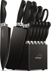 【15 Pieces Multipurpose Knife Set】 15 pieces knife set includes: 8" Chef knife, 8" Slicing knife, 7" Santoku knife, 8" Serrated bread knife, 5" Utility knife, 3.5" Paring knife, 6 Pcs 4.5" serrated steak knife, 1 Pc kitchen shear, and Black hard wood Knife Block with built-in Knife Sharpener. 【Black Non-Stick & Anti-Rust Coating】 The black coating on the stainless steel surface does a good job of stopping the knives from oxidizing in contact with oxygen in the air, so the kitchen knife set will remain non-stick and rust-proof for years to come. 【Amazing Built-in Knife Sharpener】 Kitchen knife sets with built-in sharpeners are very convenient and you can sharpen your knives with one hand. It saves you the trouble of finding a sharpener and sharpening your knives on a whetstone, which is great invention. 【Dishwasher Safe Sharp Knife Set】 Forged from 1.4116 high-carbon German stainless steel, this kitchen knife set is extremely resistant to stains and rust. Industry-leading tapered edge grinding technology provides optimal sharpness for precise cutting and easy resharpening. 【Amorston lifetime warranty system】Amorston each set of knives based on excellent quality, after strict quality inspection, superior customer service for each customer to provide a lifetime warranty, please feel free to buy!
