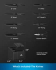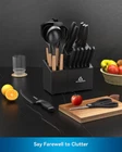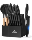 Comprehensive Set: 21-piece knife set includes 12 versatile knives and 6 essential silicone utensils, covering all your culinary needs. Included are a 8" chef knife, 8" slicing knife, 8" bread knife, 7" Santoku knife, 5" utility knife, 6 steak knives (4.5" each), a 3.5" paring knife, kitchen shears, a 6-piece kitchen utensil set, wood knife block with built-in knife sharpener, and magnetic removable utensil holder. Innovative Magnetic Storage: Keep your kitchen organized with our detachable knife block and utensil holder featuring magnetic technology. Enjoy secure and convenient storage, minimizing countertop clutter. Premium Quality & Durability: Crafted from high-carbon stainless steel, our knives are forged for exceptional cutting performance. The BO oxidation technology ensures non-stick, rust-resistant blades, providing you with long-lasting reliability. Comfortable Ergonomic Design: Each knife is designed with an ergonomic handle for a comfortable grip, making meal prep effortless and enjoyable. Perfect Gift Idea: Ideal for weddings, housewarmings, Thanksgiving, and Christmas, this knife set is a thoughtful gift for cooks of all levels. Plus, with our 30-day trial and 12-month , you can buy with confidence.