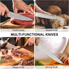 Knife Set 23Pieces Kitchen Chef Knife Set with Block High Carbon Stainless Steel About this item 🔪 Multi-Purpose Kitchen Knife Set: Elevate your culinary skills with the kitchen knife set, featuring a chef's knife, santoku knife, bread knife, slicing knife, utility knife, paring knife, boning knife, 8 steak knives, sharpener rod, kitchen shears, finger guard, and more essential tools. Perfect for all your daily kitchen needs. 💎 Crafted for Endurance: Each blade is forged from high-carbon X50CR15 stainless steel, offering superior resistance to rust, corrosion, and stains. The ergonomic, textured handles ensure a sturdy, comfortable grip, minimizing fatigue during extended use. ⚔️ Ultra-Sharp with Unique Pattern: Hand-polished and tempered for long-lasting sharpness, each blade has a 14-16° edge per side, ensuring precise cuts. The unique Damascus-like pattern adds an elegant aesthetic to your kitchen tools. 📦 Effortless Care and Storage: Store your knives beautifully and securely in a natural oak wood block, which not only prolongs blade life but also enhances the look of your countertop with its sophisticated design. 🛡️ 24/7 Customer Support: Each knife set is thoroughly tested for quality. If the set doesn't meet your expectations, reach out to our 24-hour customer service for a seamless shopping experience.
