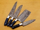 Knife Set 4 Piece Damascus Chef Knife Professional Kitchen Knives,Kitchen.Blade Material: Damascus SteelOverall Length : 13"-12"-11''-10'' InchesBlade Length: 8.5"-7.5"-6.5''-5.5'' inchesHandle Length: 4.5" InchesElevate your culinary experience with our 4-Piece Damascus Chef Knife Set, a testament to exceptional craftsmanship. Meticulously crafted from high-quality Damascus steel, each knife in this set is a masterpiece designed to meet the demands of professional chefs and home cooks alike.Key Features:Premium Damascus Steel: Our knives are forged from layers of high-carbon stainless steel, creating a stunning Damascus pattern that not only enhances the aesthetic appeal but also ensures durability and strength. Whether you're slicing, dicing, or chopping, experience unmatched sharpness and effortless cutting every time.Ergonomic Design: The knives feature ergonomic handles designed for comfort and control. The balance of each knife allows for extended use without causing hand fatigue, ensuring a comfortable grip during prolonged cooking sessions.Versatile Set: This 4-piece set includes essential kitchen knives - a chef knife, utility knife, Santoku knife, and a paring knife. From tackling large cuts to intricate tasks, this set has you covered for all your culinary needs.Stunning Aesthetics: The exquisite Damascus pattern on each blade adds a touch of elegance to your kitchen. Impress your guests not just with your culinary skills but also with the beauty of these knives.Durability and Longevity: The Damascus steel construction not only provides excellent edge retention but also enhances the overall durability of the knives. Invest in quality that loads a lifetime.Perfect Gift: Delight the cooking enthusiast in your life with this thoughtfully curated Damascus Chef Knife Set. Whether it's for a professional chef, culinary student, or home cook, this set makes for an unforgettable and practical gift.Transform your kitchen into a haven of culinary excellence with our 4-Piece Damascus Chef Knife Set. Elevate your cooking game and make a statement with knives that blend functionality, precision, and style seamlessly. Order now and experience the art of cooking with the finest tools at your fingertips!