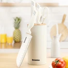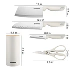 Knife Set, 5 Pieces Professional Chef Knife Set with Block, Super Sharp Stainless Steel Cooking Knife Set with Ergonomic Handle, Kitchen Knife Block Set for Chopping Dicing Slicing Cutting (White) Product Details Color: White Brand: FTNESGYM MPN: Does not apply UPC: Does not apply EAN: Does not apply Color: White Brand: FTNESGYM Blade Material: Stainless Steel Blade Edge: Plain Item dimensions L x W x H: 2 x 2 x 1 inches Color: White Brand: FTNESGYM Blade Material: Stainless Steel Blade Edge: Plain Style: Beautiful fashion Item Weight: 0.1 Pounds Is Dishwasher Safe: No Construction Type: Forged Manufacturer: FTNESGYM Item Length: 12 Inches Item Weight: 1.6 ounces Date First Available: July 27, 2023 5 Piece White Knife SetThis set of knives has an elegant look and colors, suitable for all kitchen styles. The five-piece set includes slicing knife, chef knife, fruit knife, kitchen scissors, and Block, which can meet your different needs for cutting, slicing, and chopping. Sharp and DurableOur knife set is made of high-quality stainless steel and completed after 25 professional manufacturing processes. Hard and anti-corrosion, long-lasting sharpness, can easily cut all kinds of food. Ergonomic DesignThis set of knives is ergonomically designed, and the handle fits the palm of your hand, ensuring more comfortable holding and no fatigue when holding for a long time. Easy to CleanThe knife seat is detachable and has a drainage hole design, which is very convenient to clean. After using the knife, wash with clean water and put it in a ventilated place to dry. Space SavingAll knives can be stored in the knife holder, which can save space and provide you with more space to display your excellent cooking skills. It is a perfect decoration in the kitchen when not in use.