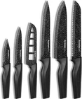 • 【Sharp, Non-Stick & Rust-Resistant】Black kitchen knife set uses a unique anti-rust, anti-stick and anti-oxidant Teflon coating, so that the blade is always in the best condition, extremely easy to clean, greatly extending the life of the knife. • 【Dishwasher Safe】This knife sets for kitchen with block is dishwasher safe, easy to maintain. Perfect for storage after washing and drying. The surface layer has a high-grade anti-rust coating, which will not rust as easily as other kitchen knife sets, and will not cause damage despite the high intensity impact of the dishwasher. • 【Complete cooking knife set】Includes a variety of cutting knives for every job in the kitchen. Set Includes: 8" chef's knife blade for most kitchen tasks such as cutting vegetables, meats, etc.; 8" bread knife; 8" slicing knife; 6" Santoku knife for easily cutting through soft and hard cheeses and other easy-to-stick foods; 5.5" utility knife; 3.5" paring knife. • 【Comfortable Non-slip Handle】The knife handle is designed by the most professional designers. The lines are perfectly ergonomic. Comfortable grip. Even if you use it for a long time, your hand will not feel any uncomfortable. In order to improve the safety of using the knife, we also designed extra anti-slip air holes for the handle to ensure the safety when making delicious. The stainless steel tail at the end of the handle is the aesthetic finishing touch to the knife. • 【Lifetime Warranty】Each knife set are backed by excellent quality and undergo strict quality inspection, we provide a lifetime warranty for every customer, please feel free to purchase.