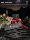 Knife Set, 6 Piece Kitchen Knife Set, High Carbon German Stainless Steel Knives Set, Non-stick Coating, Ultra Sharp, Dishwasher Safe Description Features: Sharp, Non-Stick & Rust-ResistantBlack kitchen knife set uses a unique anti-rust, anti-stick and anti-oxidant Teflon coating, so that the blade is always in the best condition, extremely easy to clean, greatly extending the life of the knife. Dishwasher SafeThis knife sets for kitchen with block is dishwasher safe, easy to maintain. Perfect for storage after washing and drying. The surface layer has a high-grade anti-rust coating, which will not rust as easily as other kitchen knife sets, and will not cause damage despite the high intensity impact of the dishwasher. Complete cooking knife setIncludes a variety of cutting knives for every job in the kitchen. Set Includes: 8" chef's knife blade for most kitchen tasks such as cutting vegetables, meats, etc.; 8" bread knife; 8" slicing knife; 6" Santoku knife for easily cutting through soft and hard cheeses and other easy-to-stick foods; 5.5" utility knife; 3.5" paring knife. Comfortable Non-slip HandleThe knife handle is designed by the most professional designers. The lines are perfectly ergonomic. Comfortable grip. Even if you use it for a long time, your hand will not feel any uncomfortable. In order to improve the safety of using the knife, we also designed extra anti-slip air holes for the handle to ensure the safety when making delicious. The stainless steel tail at the end of the handle is the aesthetic finishing touch to the knife. Lifetime WarrantyEach knife set are backed by excellent quality and undergo strict quality inspection, we provide a lifetime warranty for every customer, please feel free to purchase. Product Details: Blade Material: High Carbon Stainless Steel Brand: Astercook Handle Material: Polypropylene Blade Edge: Plain Blade Color: Black Blade Material: High Carbon Stainless Steel Brand: Astercook Handle Material: Polypropylene Blade Edge: Plain Blade Color: Black Is Dishwasher Safe: Yes Package Dimensions: 14.02 x 3.7 x 1.38 inches Item Weight: 1.26 pounds Date First Available: November 21, 2023 Handling We will ship all orders within 4 business days of payment. Delivery We do not ship outside of the Continental US. Feedback We take our reputation seriously, we buy and sell online, so we understand the value of trust. If you are unsatisfied with your order, please contact us and we will work with you to resolve it to your satisfaction. About Us We're a husband-wife team in a family of 5 working to bring you the best deals we can find!