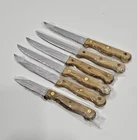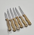 Vintage Knife Set 6 Pc Japan Stainless Steel Wood Handles. New without box. Some rivets are rusted due to time and have been stored. (Last pictures.)