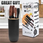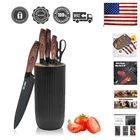 Knife Set, 6-Piece Black Professional Kitchen Knife Set for Chef, Super Sharp Knife Set with Universal Knife Block, Anti-Rust Stainless Steel Kitchen Knife Block Set, Ergonomical Design Black 【Professional High Quality Chef Knife Set】The Black 6-Piece Knife Set with superior high-carbon German stainless steel blades for precision is sharp and sturdy with a thin edge that keeps food from sticking to the knife’s edge, maintaining its ultra-sharp edge for precise cuts. Honed for long-lasting sharpness, the fine-edge blades boast precision cutting. Please stay away from Children because it is very sharp. 【Utility-driven Kitchen Knife Set】The 6-piece professional chef knife block set meets all the tools you need: 12" Kitchen Knife, 10" Chef's Knife, 9" Utility Knife, 8" Small Cleaver Meat Knife, " Kitchen Scissors, " Universal Knife Block. Multi-purpose Shear. Kitchen Knife Sets keep knives organized, neat, and space-saving. 【Ergonomic Design - Comfortable and Durable Handle】The appearance of this handle is made of wood grain design, each knife in the kitchen knife set features a fully forged bolster for sturdy, balanced cutting. The solid ergonomic PP wood handles enhanced Comfort Level and minimize wrist tension, give you a good sense of control over the blade and even after prolonged use, your palm and wrist will not fatigue. 【Nonstick & Rustproof Kitchen Knife Set】Unique Blade Design - Classic 3cr13 + Diamond Blade + Non Stick Coating, special new upgraded diamond pattern non stick coating kitchen knives are not only particularly but also strikingly, coating with nonstick coating can prevent food from sticking to knives and effectively prevent knives from rusting and very easy to clean. 【Gift Ideas and 100% Customer Satisfication Service】Knife block set is ideal for both professional and amateur cooks, this 6 pieces kitchen knife set is very suitable for parents and friends on Father's Day, Mother's Day, as a housewarming gifts, thanksgiving gifts and Christmas gifts. For any problems, please do not hesitate to contact me. promises hassle-free or return of defective knife sets. -Kitchen Great Helper As a professional kitchenware manufacturer, was born in 2002 in a professional woodworking workshop in Guangdong.