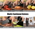 【Professional High Quality Chef Knife Set】The Black 6-Piece Knife Set with superior high-carbon German stainless steel blades for precision is sharp and sturdy with a thin edge that keeps food from sticking to the knife’s edge, maintaining its ultra-sharp edge for precise cuts. Honed for long-lasting sharpness, the fine-edge blades boast precision cutting. Please stay away from Children because it is very sharp. 【Utility-driven Kitchen Knife Set】The 6-piece professional chef knife block set meets all the tools you need: 12" Kitchen Knife, 10" Chef's Knife, 9" Utility Knife, 8" Small Cleaver Meat Knife, 7.9" Kitchen Scissors, 9.3" Universal Knife Block. Multi-purpose Shear. Kitchen Knife Sets keep knives organized, neat, and space-saving. 【Ergonomic Design - Comfortable and Durable Handle】The appearance of this handle is made of wood grain design, each knife in the kitchen knife set features a fully forged bolster for sturdy, balanced cutting. The solid ergonomic PP wood handles enhanced Comfort Level and minimize wrist tension, give you a good sense of control over the blade and even after prolonged use, your palm and wrist will not fatigue. 【Nonstick & Rustproof Kitchen Knife Set】Unique Blade Design - Classic 3cr13 + Diamond Blade + Non Stick Coating, special new upgraded diamond pattern non stick coating kitchen knives are not only particularly but also strikingly, coating with nonstick coating can prevent food from sticking to knives and effectively prevent knives from rusting and very easy to clean. 【Gift Ideas and 100% Customer Satisfication Service】Knife block set is ideal for both professional and amateur cooks, this 6 pieces kitchen knife set is very suitable for parents and friends on Father's Day, Mother's Day, as a housewarming gifts, thanksgiving gifts and Christmas gifts. For any problems, please do not hesitate to us. promises hassle-free or return of defective knife sets.