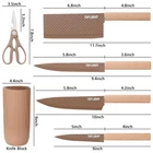 Knife Set, 6-Piece Coffee Kitchen Knife Set for Home, Anti-Rust Non-stick Stainless Steel Sharp Chef Knife Set with Universal Knife Block for Kitchen, Ergonomical Design (Coffee) High Quality Knife Set: Superior high-carbon German stainless steel blades for precision is sharp and sturdy that ensures precision cutting and lasting sharpness. Perfect for cutting meats, fruits and veggies, such as butter, cheese, avocado, banana Universal Knife Block: Our modern knife block is great for small kitchens with limited counter space, you will love the functionality of how the knives slide down into the knife holder good quality and weight for handling, easy storage Utility-driven Kitchen Knife Set: 6-Piece knife block set includes: 12" Kitchen Knife, 10" Chef's Knife, 9" Utility Knife, 8" Cleaver Meat Knife, 7.9" Kitchen Scissors, 9.3" Universal Knife Block which keep knives organized, neat, and space-saving Comfortable Grip: Each knife features a fully forged bolster that enhanced Comfort Level and minimize wrist tension, the solid ergonomic PP wood knife handles offer pleasant weight for better balance and control Non-Stick and Rust Resistant: Our unique diamond pattern blade can effortless food release and prevent food from sticking to knives, easy cutting, no food debris, that effectively prevent knives from rusting, easy to clean and promotes hygiene Unique Gifts: This 6-piece beautiful knives are ideal Gifts for parents and friends, as a Father's Day, Mother's Day gifts, housewarming gifts, Thanksgiving and Christmas gifts. For any problems, we promises hassle-free replacement of defective knife sets Shipping We offer FREE shipping on all orders! We ship within Three business days of payment, usually sooner. We use a selection of shipping services such as UPS, FedEx, USPS etc. We only ship to the lower 48 states, no APO/FPO addresses or PO Boxes allowed. Local pickups and combined shipping options are not provided at this time. Return You can return a product for up to 30 days from the date you purchased it. Any product you return must be in the same condition you received it and in the original packaging. Please keep the receipt. Payment Please pay as soon as possible after winning an auction, as that will allow us to post your item to you sooner! Feedback Customer satisfaction is very important to us. If you have any problem with your order, please contact us and we will do our best to make you satisfied. Contact Us If you have any queries, please contact us via ebay. We usually respond within 24 hours on weekdays. Please visit our eBay store to check out other items for sale! Thank you for shopping at our store.